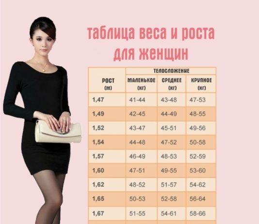 Вот таблица, где написан идеальный вес для вашего роста и телосложения