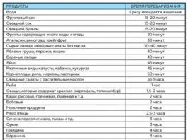 Таблица, которую надо распечатать и держать под рукой: сколько времени требуется для усвоения пищи