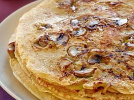 Блины с припёком из грибов и зелёного лука